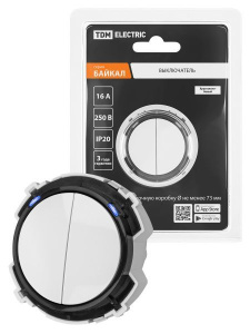 Выключатель 2-кл. 16А 250В белый, "Байкал" TDM