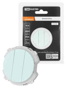 Выключатель 2-кл. 16А 250В проходной кнопочный механизм фисташковый, "Байкал" TDM