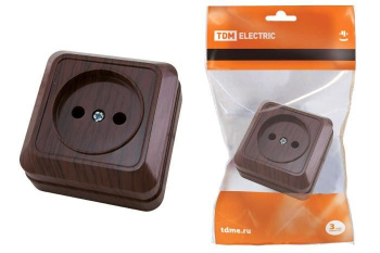 TDM Розетка 2П открытой установки IP20 10А 250В (керамика) бук "Ладога"