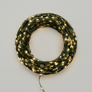Гирлянда Роса с контроллером 100м, 1000LED, IP20, 230В, зеленый провод, теплое белое свечение