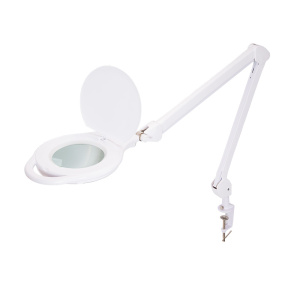 Лупа на струбцине круглая 5D с подсветкой 72 SMD, сенсорный регулятор яркости, ø152мм, белая REXANT