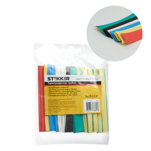 STEKKER HST-1260-10M Набор термоусадочных трубок 12,0/6,0, длина 10 см, усадка 2:1, мультиколор (21шт в уп) | 500 |