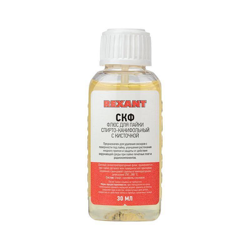 Флюс для пайки REXANT, СКФ (спирто-канифольный), 30 мл, с кисточкой, флакон, блистер