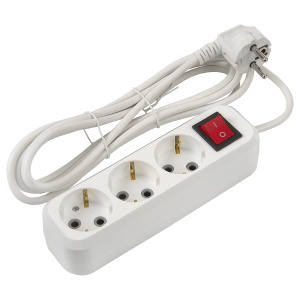 GENERAL Удлинитель бытовой GES-10-3x075-3-3m-S, 10А, 3х0,75 мм2, 3 места, 3 метра, с заземлением, с выключателем
