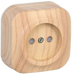Розетка одноместная для открытой установки РС20-2-ХС без заземления 10А GLORY сосна IEK