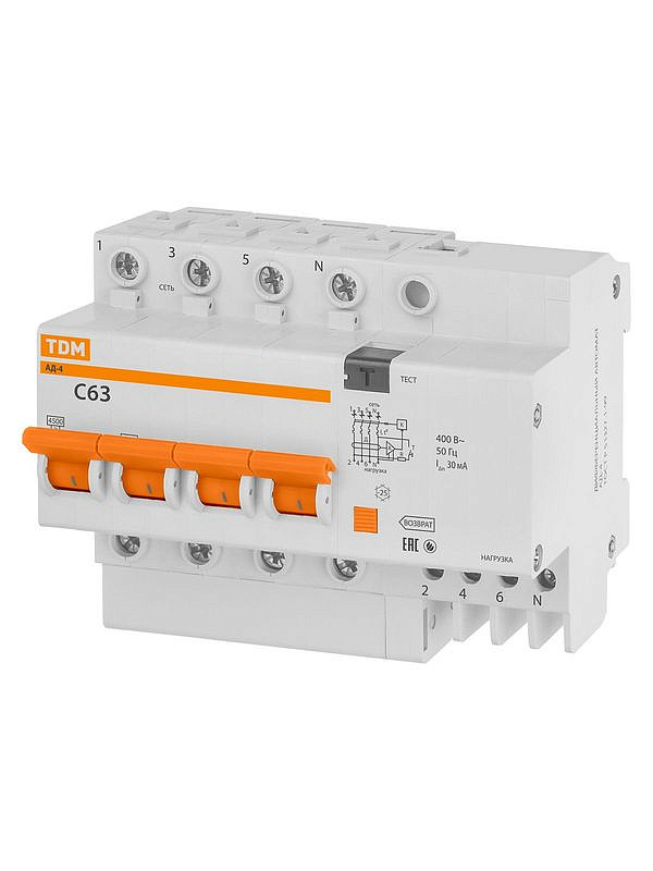 Диф.автомат АД-4 4Р 63А 30мА TDM
