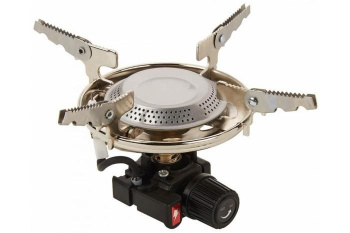 Плита снабжена механизмом в виде раскладывающихся «лепестков» из нержавеющей стали предохраняющих пламя от задувания ветром. Цена: