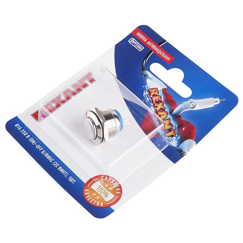 Кнопка антивандальная Ø19 12В(LED) Фикс (5с) OFF-ON/ON-OFF подсв/синяя REXANT | 250 |