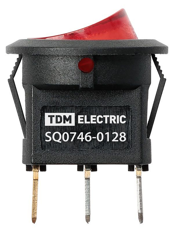 KCD2-101N 12В AC/DC, 1P, 20А, (3с), ON-OFF, черный корпус, красная клавиша с LED подсв., TDM