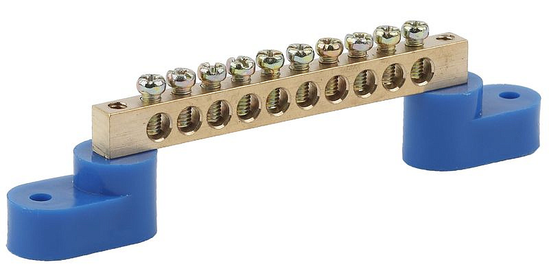 Нулевые шины N предназначены для электрического и механического соединения нулевых проводников. Является проводником, который служит для возврата к источнику остатка напряжения в стандартном случае или выравнивания потенциала в трёхфазной сети. Изделие выполнено из латунной шины сечением 6×9 мм уста... подробнее в описании Цена: