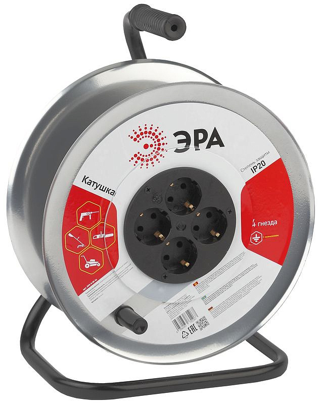 Удлинитель силовой на пластиковой катушке ЭРА RPx-4s-2x1.0-40m с заземлением, с выключателем, ПВС 2х1м2, 4 розетки, 40 м. Мощность 10А/2200Вт. Используется для работы на строительных площадках или дачных участках. Удобен при работе с приборами находящимися удаленно от стационарной розетки. Например,... подробнее в описании