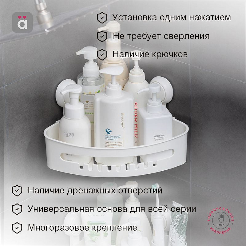 Полка для ванной комнаты на вакуумной присоске, угловая HALSA