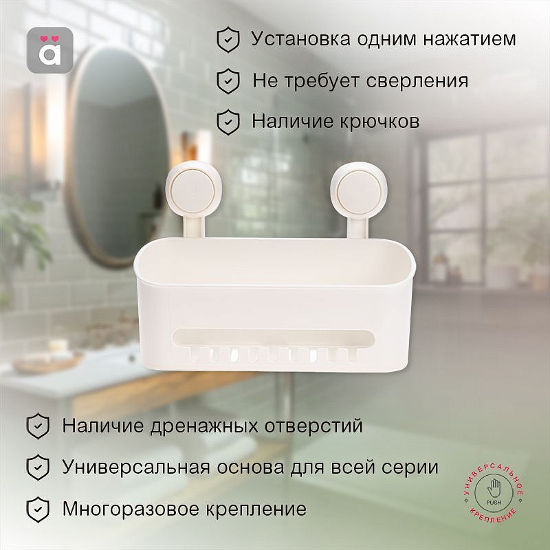 Прямая полка предназначена для размещения различных гигиенических средств и других принадлежностей. Позволяет организовать расстановку вещей в ванной комнате, сохранить уют и порядок. Изделие фиксируется на различных вертикальных поверхностях при помощи водостойких вакуумных присосок. Такой многора... подробнее в описании Цена: |