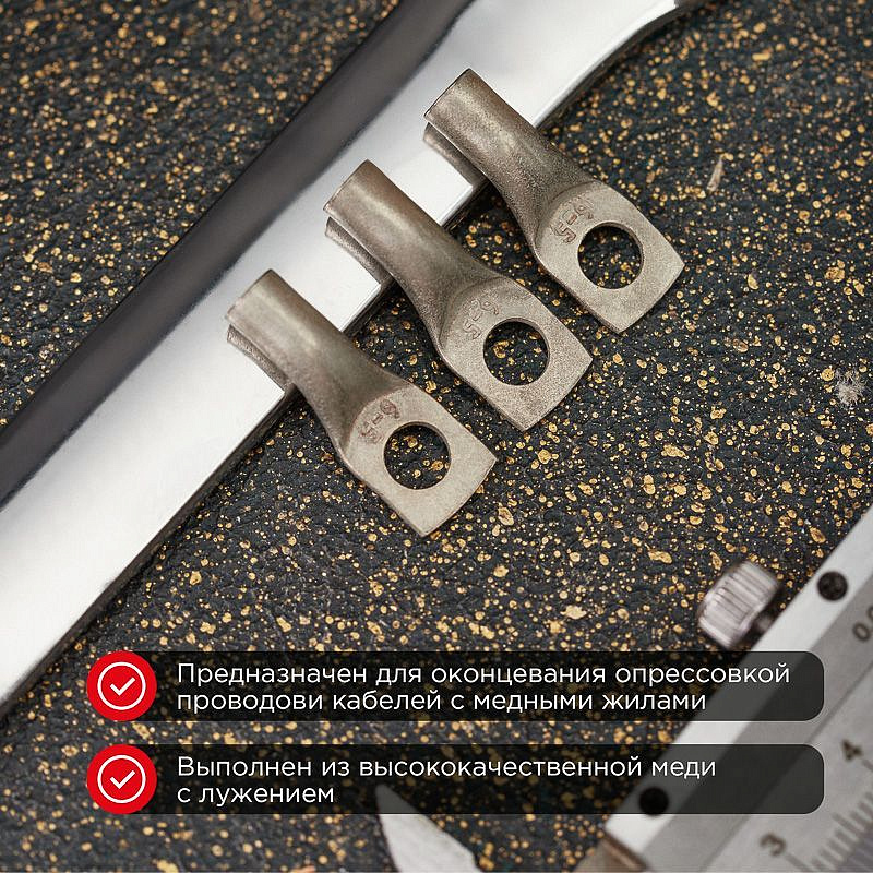 Наконечник медный луженый ТМЛ-Р 10–6 (10мм² - Ø6мм) (в упак. 5 шт.) REXANT