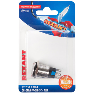Кнопка антивандальная Ø19 250В Фикс (5с) ON-OFF/OFF-ON подсв/красная REXANT (в упак. 1шт.)