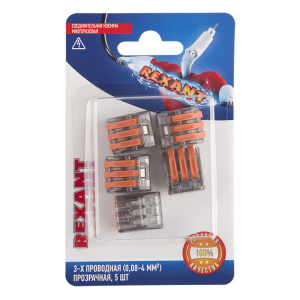 Соединительная клемма многоразовая, 3-х проводная, прозрачная (0,08-4 мм²), (5шт.) REXANT