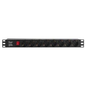 Блок розеток, 19", 1U, 16А, 8 розеток, корпус пластик, без шнура питания | 20 |