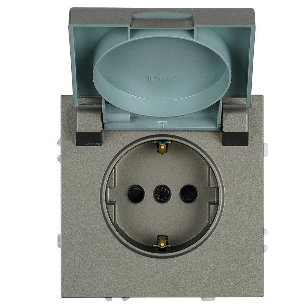 STEKKER Эмили Розетка 1-местная с крышкой с защ. штор, с/з, soft touch, Антрацит |