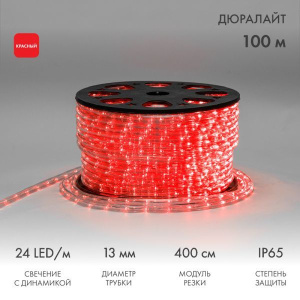 Дюралайт LED, свечение с динамикой (3W) - красный, 24 LED/м, бухта 100м 100