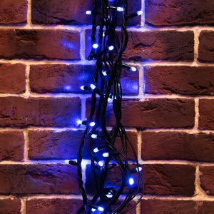 Гирлянда Нить 10м, постоянное свечение, черный ПВХ, 24В, цвет: Синий