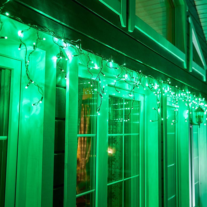 Гирлянда светодиодная Бахрома (Айсикл), 4,8х0,6м, 176 LED ЗЕЛЕНЫЙ, прозрачный ПВХ, IP65, постоянное свечение, 230В NEON-NIGHT (шнур питания в комплекте) 10