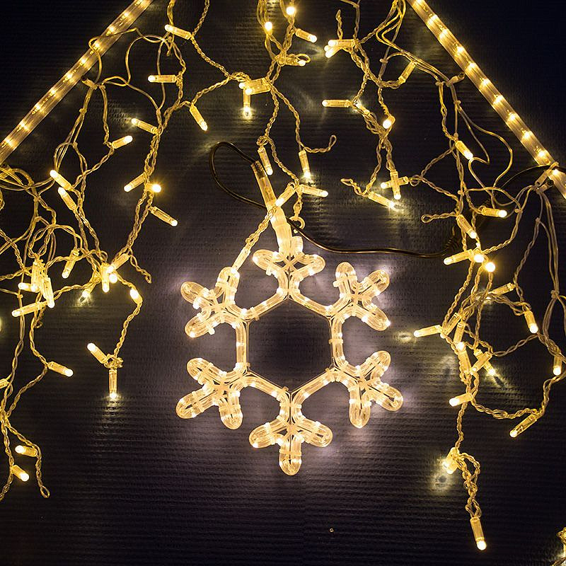 Гирлянда "Бахрома" ("Айсикл") представляет собой гибкий горизонтальный шнур-шину, к которому через определенные промежутки крепятся вертикальные нити разной длины со светодиодами. Она имитирует сосульки и может послужить эффектным и оригинальным решением при декорировании... подробнее в описании