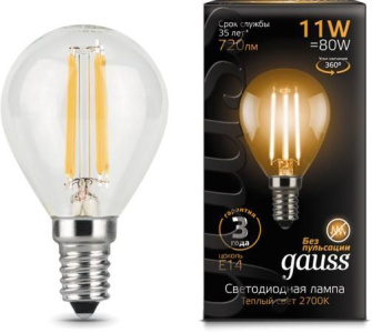 Лампа Gauss LED Filament Шар E14 11W 720lm 2700K | 10 |