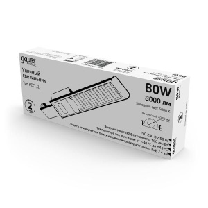 Светильник Уличный Gauss LED Qplus IP65 455*180*49 80W 9600lm 5000K 120-260V КСС "Ш"