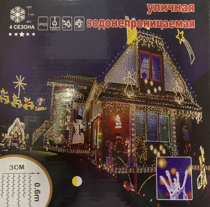 Бахрома уличная,водонепроницаемая. Микро LED. Длина 30х0,6 метров. Цвет белый/холодный Цена: