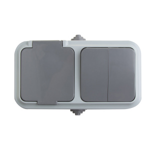 Выключатель двухклавишный + розетка влагозащищенная для открытой установки REXANT IP54, выключатель 10 А, розетка б/з 16 А, 2В-РЦ-655(03) | 30 |