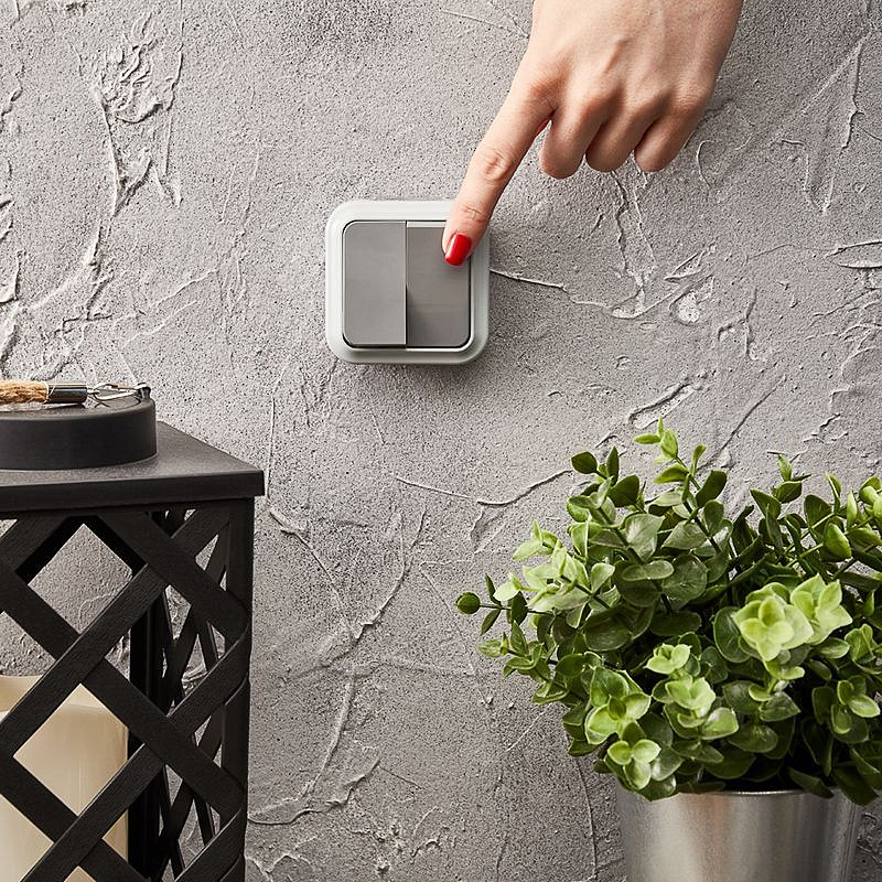 Выключатель двухклавишный влагозащищенный открытой установки REXANT IP54, 10 А, А56-224 (03)