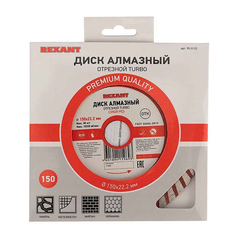Диск алмазный отрезной Turbo 150x22.23х2,4x10 мм REXANT |