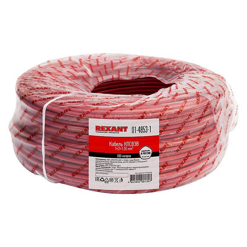 Кабель для пожарной сигнализации REXANT КПСВЭВ 1x2x1,00 мм², бухта 200м