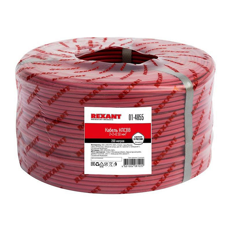 Кабель для пожарной сигнализации REXANT КПСВВ 2x2x0,50 мм², бухта 200м | 200 |