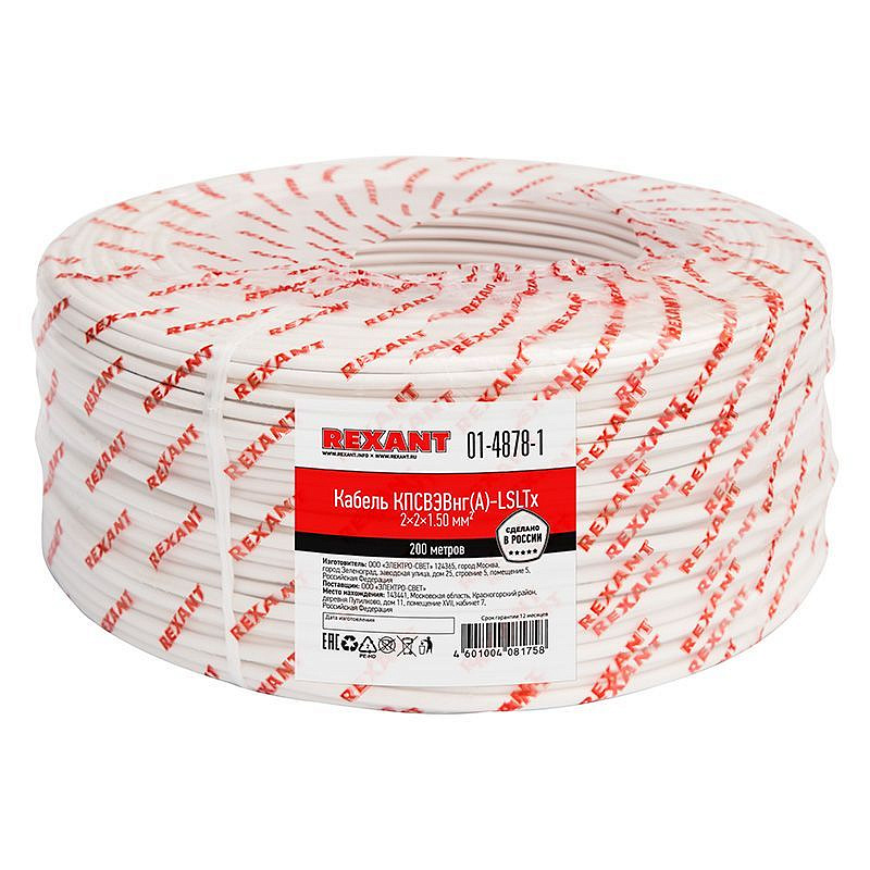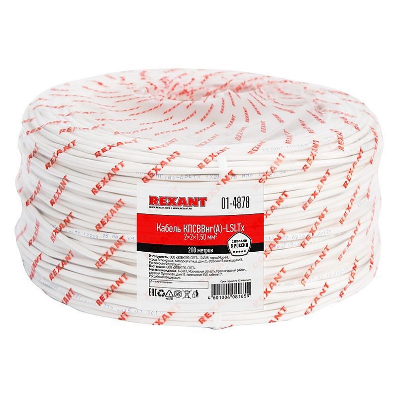 Кабель КПСнг(А)-FRLSLTx 2x2x1,00 мм² REXANT симметричной парной скрутки, огнестойкий, безгалогенный, не распространяющий горение при групповой прокладке и не выделяющий коррозионно-активных газообразных продуктов при горении и тлении, низкий уровень токсичности. Кабель состоит из... подробнее в описании Цена: