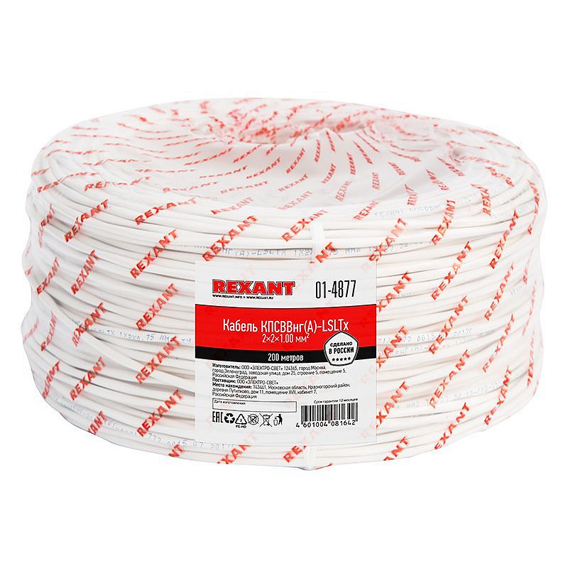 Кабель для пожарной сигнализации REXANT КПСВВ 2x2x1,00 мм², бухта 200м | 200 |
