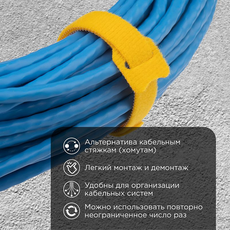 Хомут–липучка многоразовый 230х13мм, желтый (12 шт/уп) REXANT | 50 |