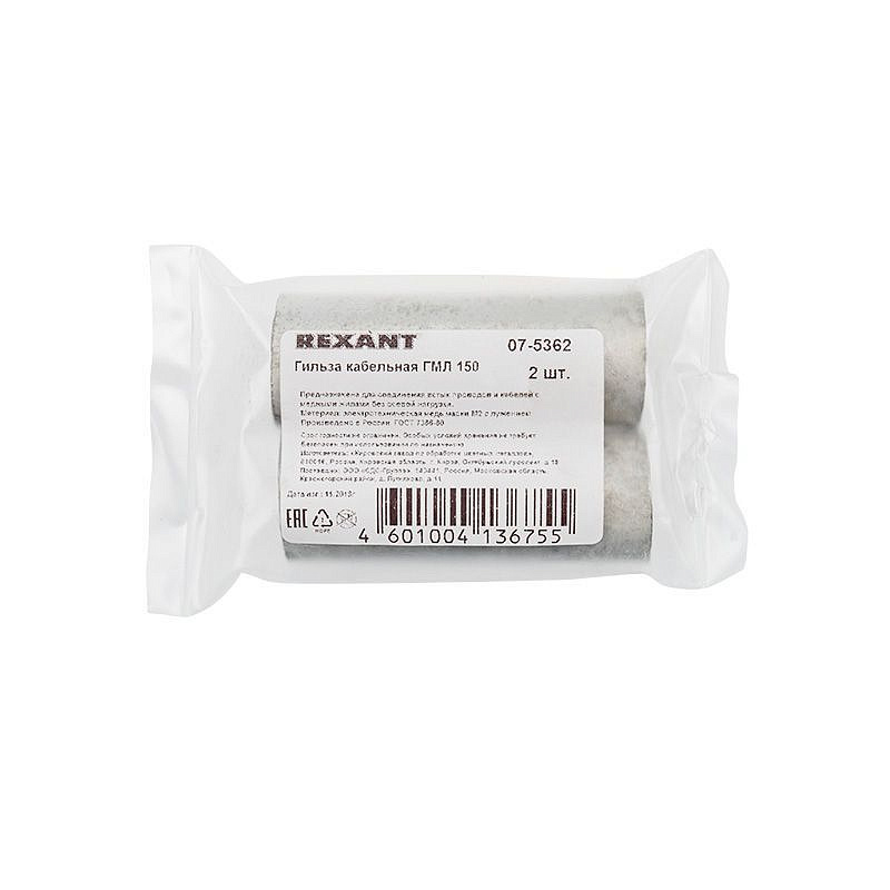 Гильза медная луженая ГМЛ 150-19 (150мм² - Ø19мм) ГОСТ 23469.3-79 (в упак. 2 шт.) REXANT | 100 |