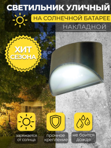Светильник садово-парковый на солнечной батарее, серии «Solar», (ДБУ) Solar LED MP106 0,5W, IP44, цвет металлик, накладной, 95*50*80мм Цена: