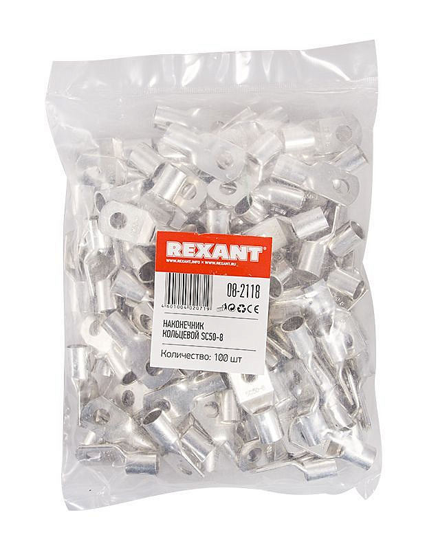 Наконечник кольцевой REXANT НК, ø8.4 мм, 50 мм², ТМЛ (DIN) 50-8 | 1200 |